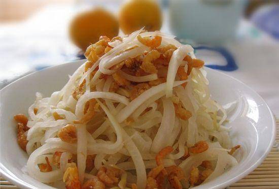 原料:白萝卜、虾米、辣椒小米、葱、姜、盐。