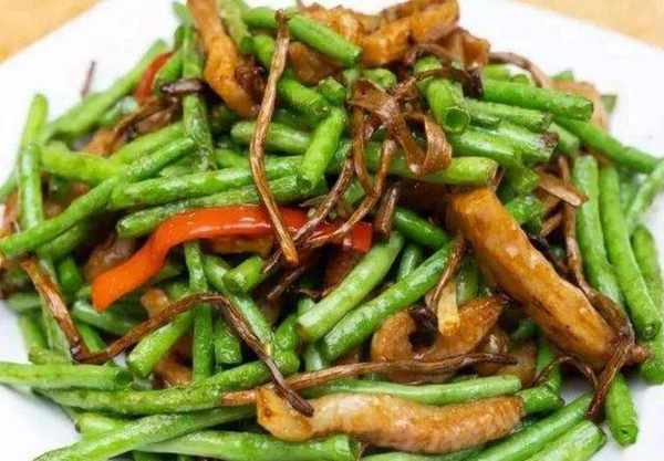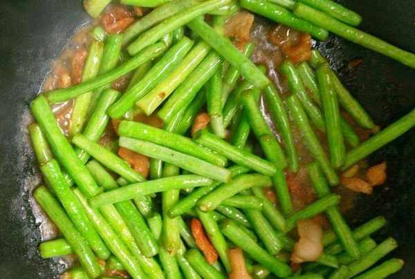 所需材料:豆角、猪肉、葱、姜、干辣椒、酱油、盐、水、食用油