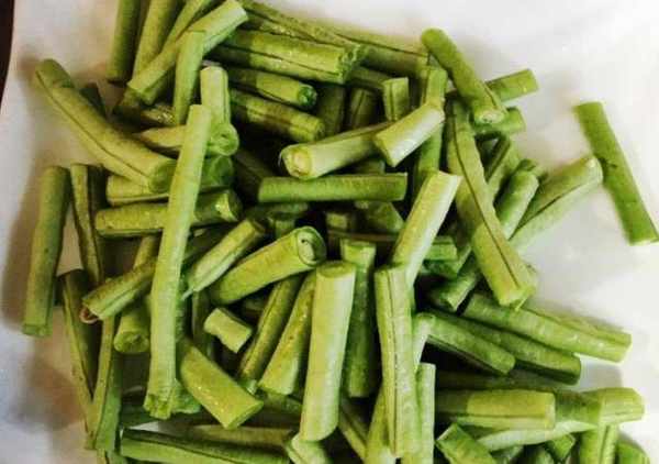 第一步:将豆角两头去掉,用清水洗净,抖去水分,切成小块备用。