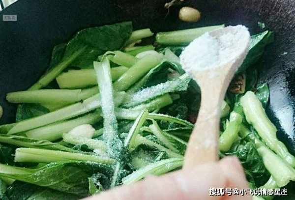 3、炒菜时,盐要最后放。如果提前加盐,盐分会导致蔬菜脱水,蔬菜会大量流失水分。当然,它们吃起来不鲜嫩,所以盐要最后加,加盐后拌匀。可以烘烤。