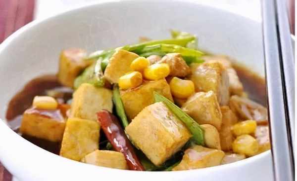 2.热锅,倒油,油温上升后,放入豆腐块,中火煎至两面金黄,盛出