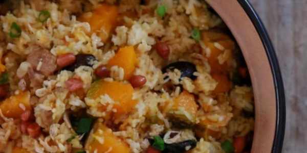 材料:栗子600克,干香菇适量,去骨鸡腿2条,白米饭4杯,枸杞子适量,香菜一小把,白胡椒粉少许,黄酒5汤匙,5素蚝油汤匙、日式酱油酱料2汤匙