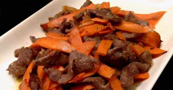 3翻炒后加入适量的黑胡椒粒。煎至6直到完成。加入切成薄片的胡萝卜和少许盐。翻炒2分钟。