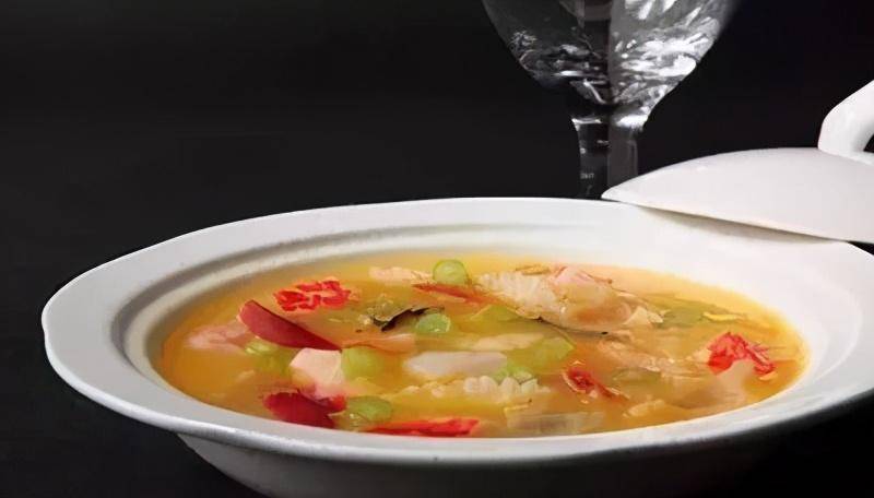 鲜鱿鱼和北极贻贝200克,虾100克,白菜片10克,海参50克,金针菇60克,切碎的白兰地75克,酸菜50克。