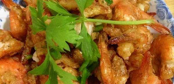 材料:虾仁500克,盐和胡椒粉5克,料酒1汤匙,淀粉30克,青椒半个,大蒜适量