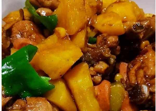 4.加入酱汁小火煮至汤汁收干,加入白胡椒粉煮熟5.洗净的米加水后(上述方法用4杯米-3.5杯水),铺上栗子和炸鸡腿。