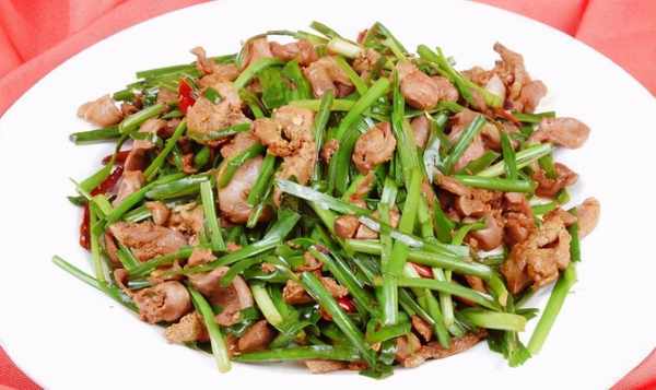 原料:韭菜、小苏打、鸡精、盐、糖、淀粉、植物油、料酒、酱油。