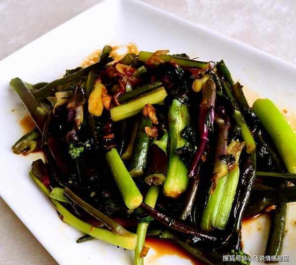 材料:红菜苔适量、蒜少许、白糖少许、白醋少许、盐适量、鸡精少许;