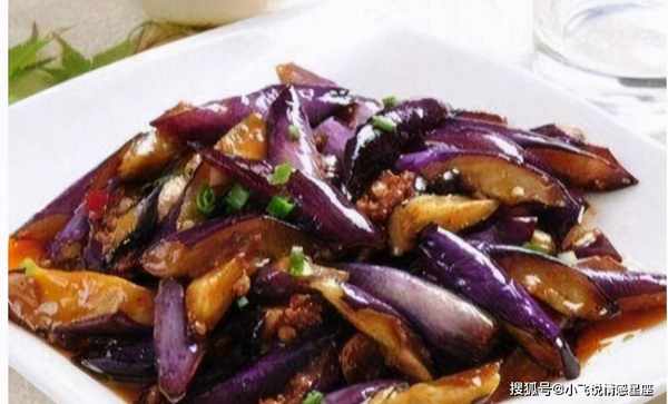 4.接着放入炸好的茄子一起翻炒,调入一点点的盐,适量生抽,多一些的糖及适量水翻炒均匀后,再调入一点点的鸡粉洒上葱花出锅即可