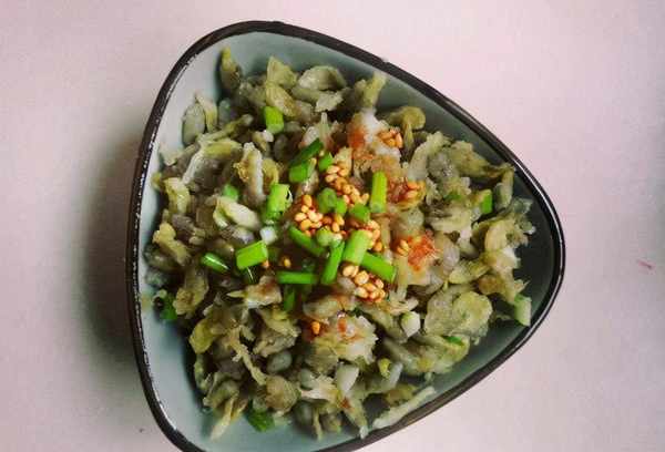 8.葱末,蒜末,芝麻油泼,加入少许醋,盐