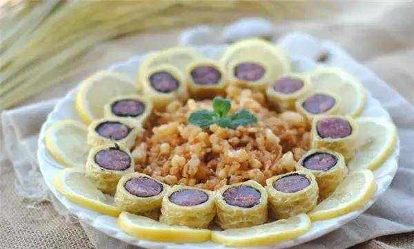 做法:1、豆腐皮切掉硬边,取紫菜一片铺在豆腐皮上,腊肠铺在紫菜上,卷起来,用湿淀粉包紧,大火蒸10分钟加热并取出。