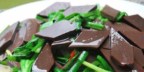 材料:猪血500克,韭菜200克,葱、姜、蒜、干红辣椒、鸡精、生抽、老抽、料酒、盐适量、青椒一个