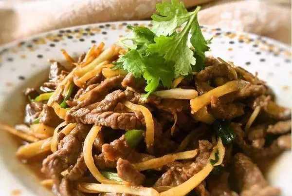 原料:牛肉、姜、葱、葱、蒜、酱油、油、盐、生粉、料酒、糖