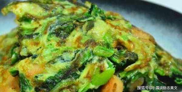 3、锅烧热,加油,摇动锅让锅底沾满油,倒入菠菜蛋羹,中小火炒熟,回筷子助铲,再翻炒一会,面糊就熟了。金子。倒入纯蛋液,待蛋液凝固后,回锅煎至两面金黄。
