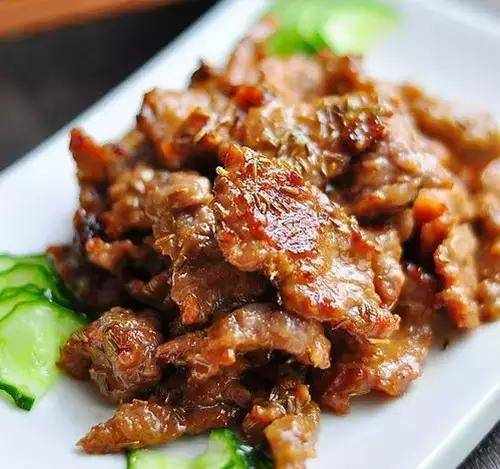 4.牛肉变色,生破。边烤边放,空处放干红辣椒,小火煎。小心别烧了