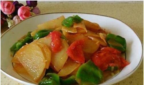 3、加入切丁的西红柿,煮至西红柿软烂;