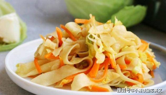 材料:卷心菜、蒸糕、胡萝卜、洋葱、酱油、生抽、盐、油