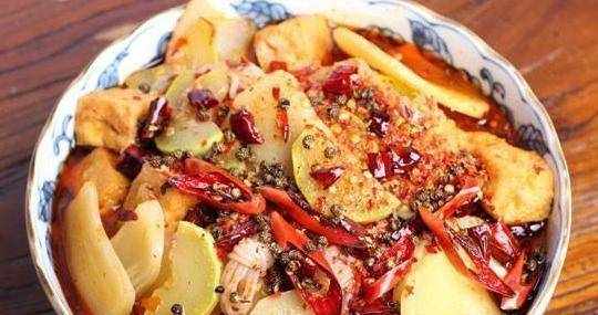 材料:生菜;莴苣;土豆;夏南瓜;豆芽;剩下的豆腐;粉碎的魔芋;郫县豆瓣酱;两汤匙;辣椒;棕榈辣椒;