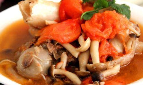 材料:西红柿2个,鲜香菇250克,大葱适量。