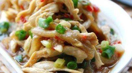 3、将煮熟的鸡肉取出,放凉,撕成块,放入冰箱冷藏20分钟;
