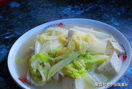 材料:白菜800克、豆腐400克、植物油3汤匙、姜1片、蒜3瓣、丁香1瓣、盐1.5茶匙、鸡高汤1/2茶匙