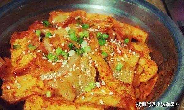 3、加入豆腐翻炒片刻,加水(或高汤)煮沸片刻;加入白菜翻炒几遍最后加入盐和鸡精