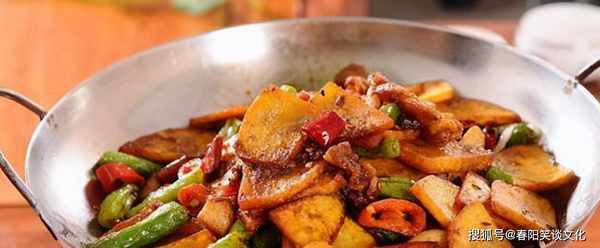原料土豆、腊肉、青辣椒、干辣椒、香葱、蒜头、酱油、盐、味精、油。第一种方式。将土豆切成薄片,用清水冲洗干净,去除表面的淀粉,然后沥干水分。在平底锅中加热少许油,将土豆片煎至两面金黄。将培根切成薄片放在一边。
