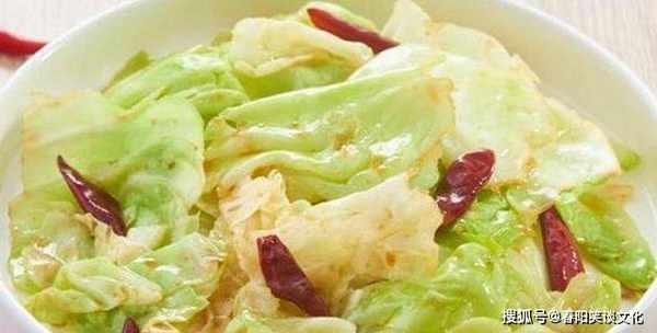 2.锅里放油烧热,放入蒜片,小火炒干辣椒(注意不要把干辣椒烧焦)。加入卷心菜,用大火翻炒,直到变成深绿色和半透明,直到它破裂。你可以。加盐、鸡精、少许酱油、几滴醋用大火快速炒匀,捞出装盘。