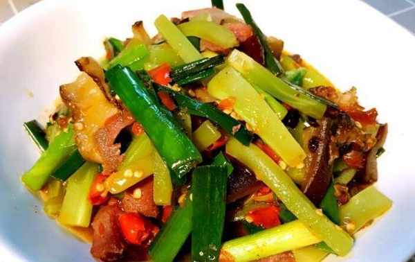 竹笋、川味腊肉、干青椒、青蒜油、盐、味精