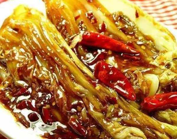 材料:白菜、干红辣椒、酱油、盐、醋、肉汁薯条、淀粉、香油、植物油、糖