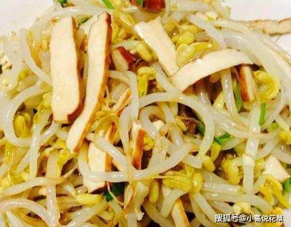 2、锅内放冷油,放入豆腐干和蒜片小火翻炒至豆腐干变香并略硬,放入豆芽;