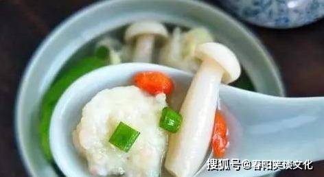 然后转小火,将虾肉刮入汤中,大火煮开最后倒入蛋液,加盐和胡椒粉调味,加入枸杞同煮,加大火候“腐烂”。