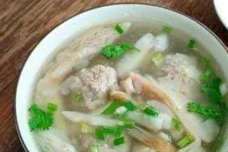 丸子做好后,用中火煮开,烧开,去浮沫,将洗净的白菜切块放入汤中,煮软,加盐和胡椒粉调味。