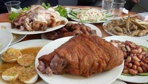 看,这是最大的一盘,是大红烧肘子,皮很脆,肉很嫩,流口水,还有蒜蓉蛋,水煮花生,烤鸭,红烧猪脚,炸莲藕、油酥鱼干、蒜蓉茄子、猪肉丸子等。