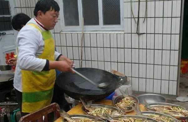 看,厨师正端着一个大铁锅,正在倒热油,正在把鱼盘里的食材炒熟。这架势,光是看着,就让人隔着屏幕都觉得好香
