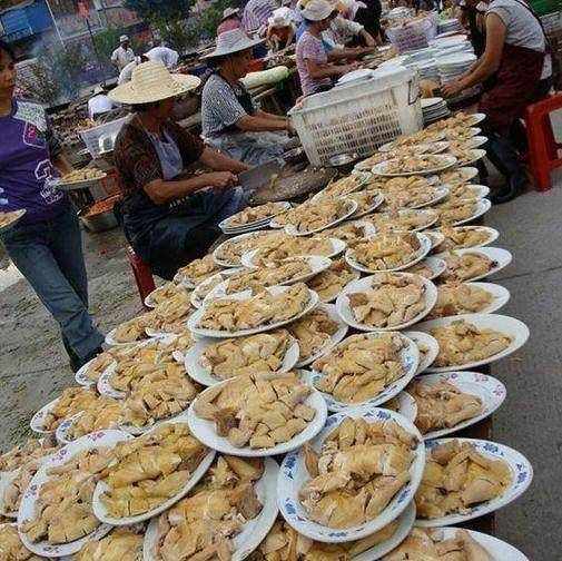 当然,有些地区还有一种“流水垫”。鸡、鸭和鱼一起上桌。