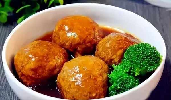 9.将丸子放在盘子里,将蒸粗麦粉汤倒入锅中,煮沸勾芡。关火,淋上少许芝麻油。将汤倒在肉丸上即可食用。