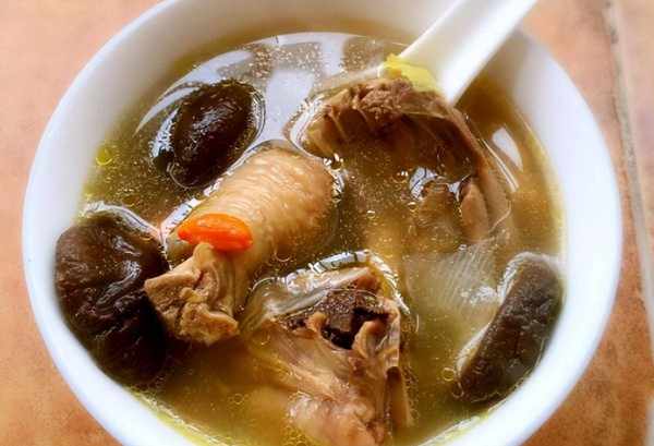 3.将鸡块、葱、姜放入另一锅,加开水,大火烧开,煮10分钟后加入香菇和罂粟花,大火烧开,关火熬。用小火煮30分钟。