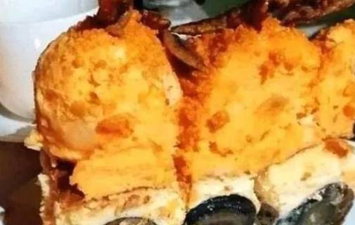 第3个,皮蛋蛋糕,这款蛋糕真的是非常另类,本身甜甜的味道,搭配上这个皮蛋有一种无法言语的表达,这款蛋糕对于不喜欢吃皮蛋的人来说,应该是大写的拒绝吧,能够把蛋糕和皮蛋这两种食材结合在一块,真的是难以想象的味道。