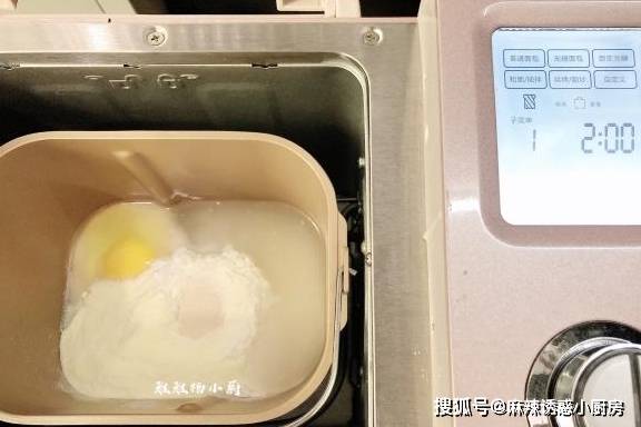 2.其它所有的材料都投进面包机启动和面功能先选择10分钟