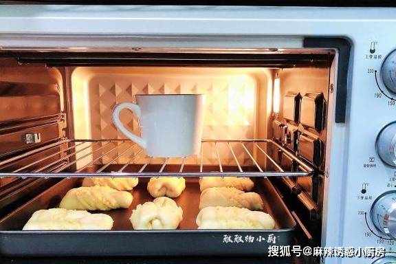 18.放进烤箱内发酵至两倍大(最佳发酵环境温度为36-38度,湿度为85%)