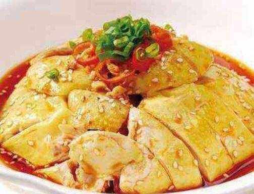 6、开始定汁:生抽、醋少许、酒粉少许(花椒油)、白砂糖。大蒜切碎,姜切碎,小葱切碎。用勺子浇在切碎的鸡肉上;