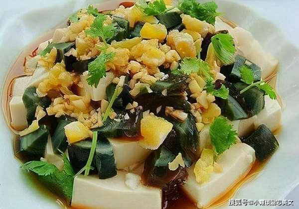 5.如图放入嫩豆腐,在上面放上皮蛋。