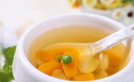 3.30分钟后,将百合放入金瓜汤中,开盖煮2分钟。