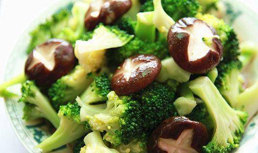 材料:西兰花、干香菇3个、小辣椒1个、盐少许、姜片。