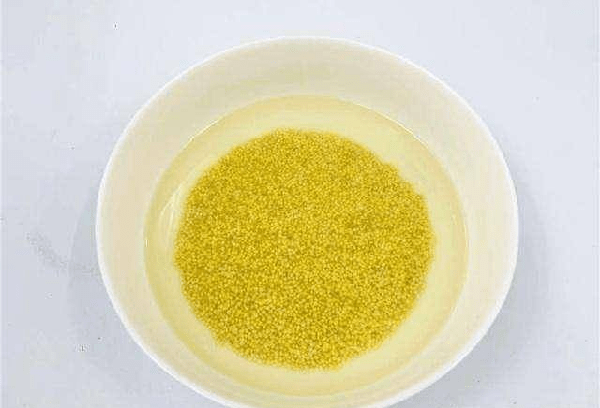 2、小米用冲洗一下,然后放在水中浸泡30分钟备用,小米不要揉搓,因为上面有一层油脂,营养价值很高。