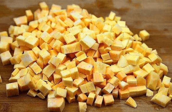 做法:1、将买来的红薯去清洗洗干净,去掉红薯的外皮,然后用刀将红薯切成大小均匀的小块状备用。