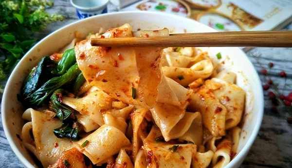 4、最后把面条放在最下面,小菜放在上面,放辣椒酱,油烧到50%,倒入辣椒,加酱油和醋。根据自己的口味调整。