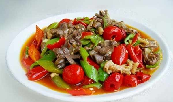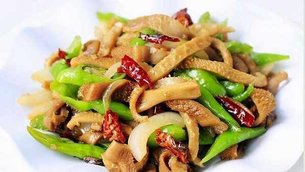 1、青椒洗净切斜段,洋葱切丝,熟羊肚切条,辣椒泡洗净切末。2、热一锅冷油,油温至70%加入花椒和辣皮溶出香味,放入羊肚炒2分钟。