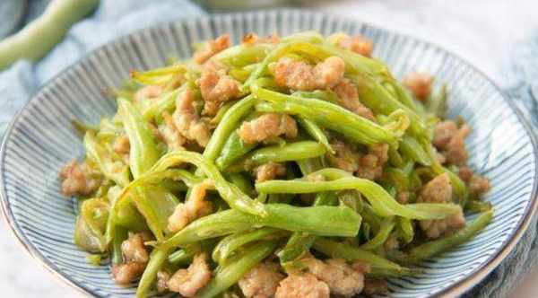 原料:猪肉、四季豆、大蒜、食用油、酱油、盐。